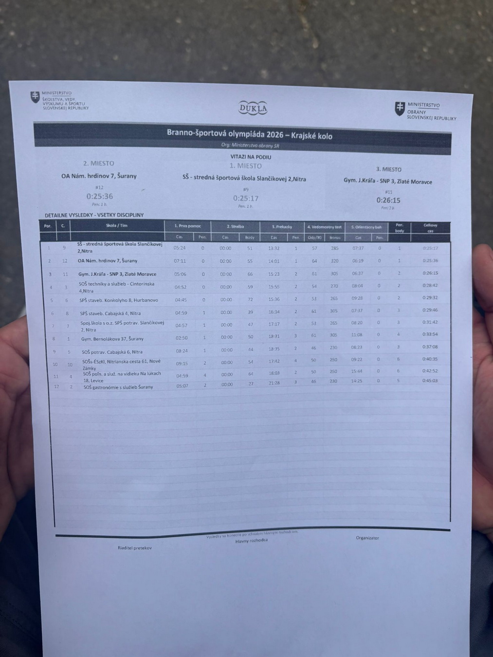 Branno-športová olympiáda 2026 – krajské kolo. Stále držíme medailové priečky!