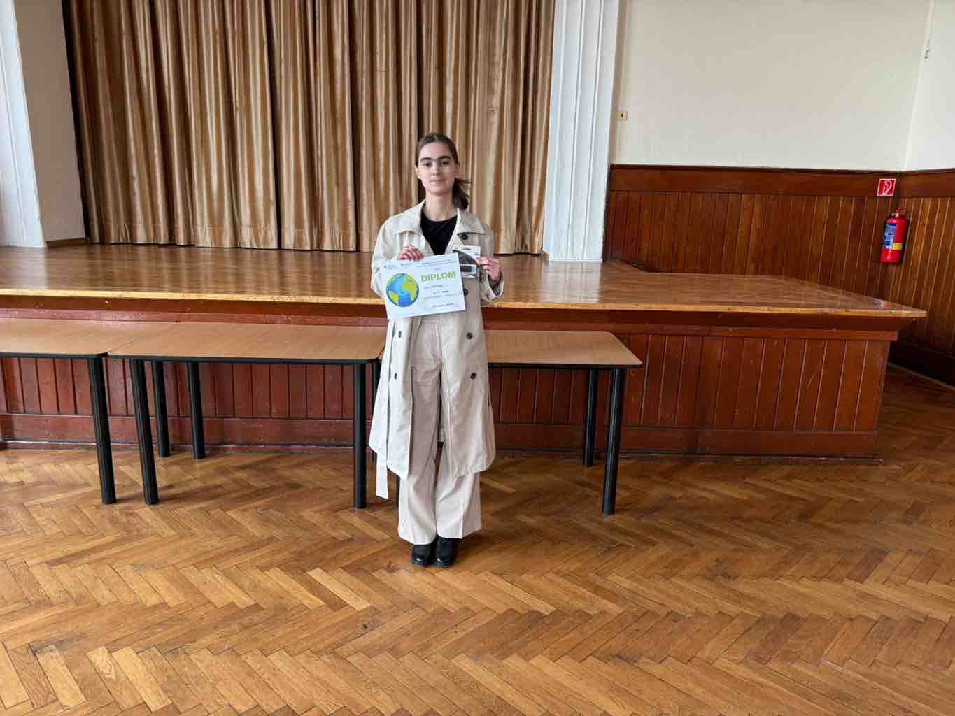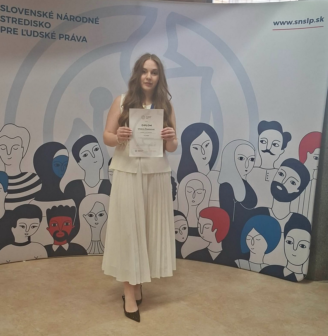 V dňoch 14.4. – 16.4.2026 sa v Bratislave uskutočnilo celoslovenské kolo 28. ročníka Olympiády ľudských práv, na ktorom našu školu opäť úspešne reprezentovala Viktória Šlosiarová zo IV.A triedy.