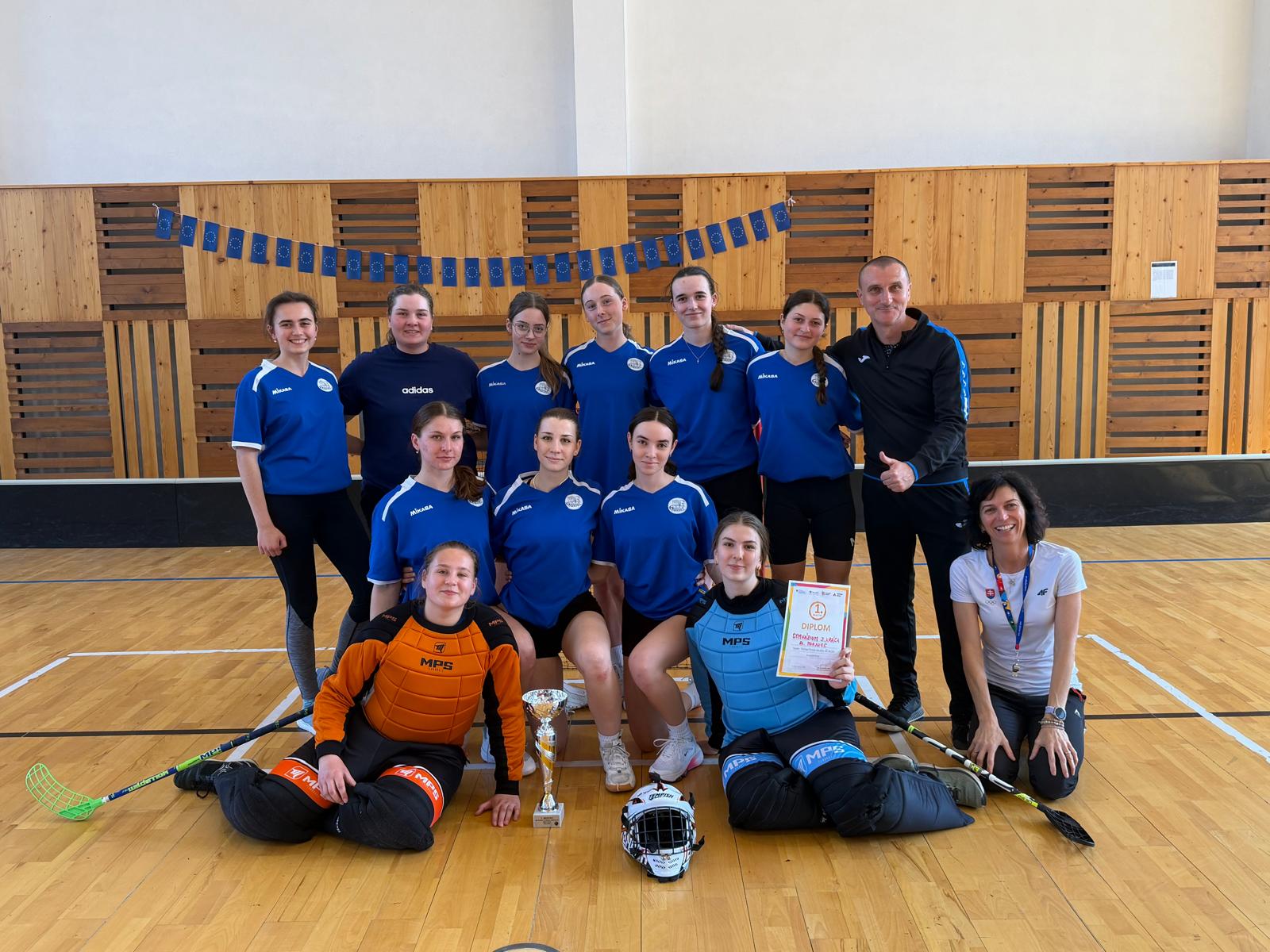 Naše gymnazistky dosiahli vynikajúci športový úspech! V krajskom kole dievčat stredných škôl 25. 3. 2026, ktoré organizovalo Gymnázium Janka Kráľa v spolupráci s florbalovým klubom Paradise vo florbale, si naše gymnazistky suverénne vybojovali 1. miesto a zabezpečili si tak postup na celoslovenského finále, ktoré sa uskutoční v máji v Prešove.