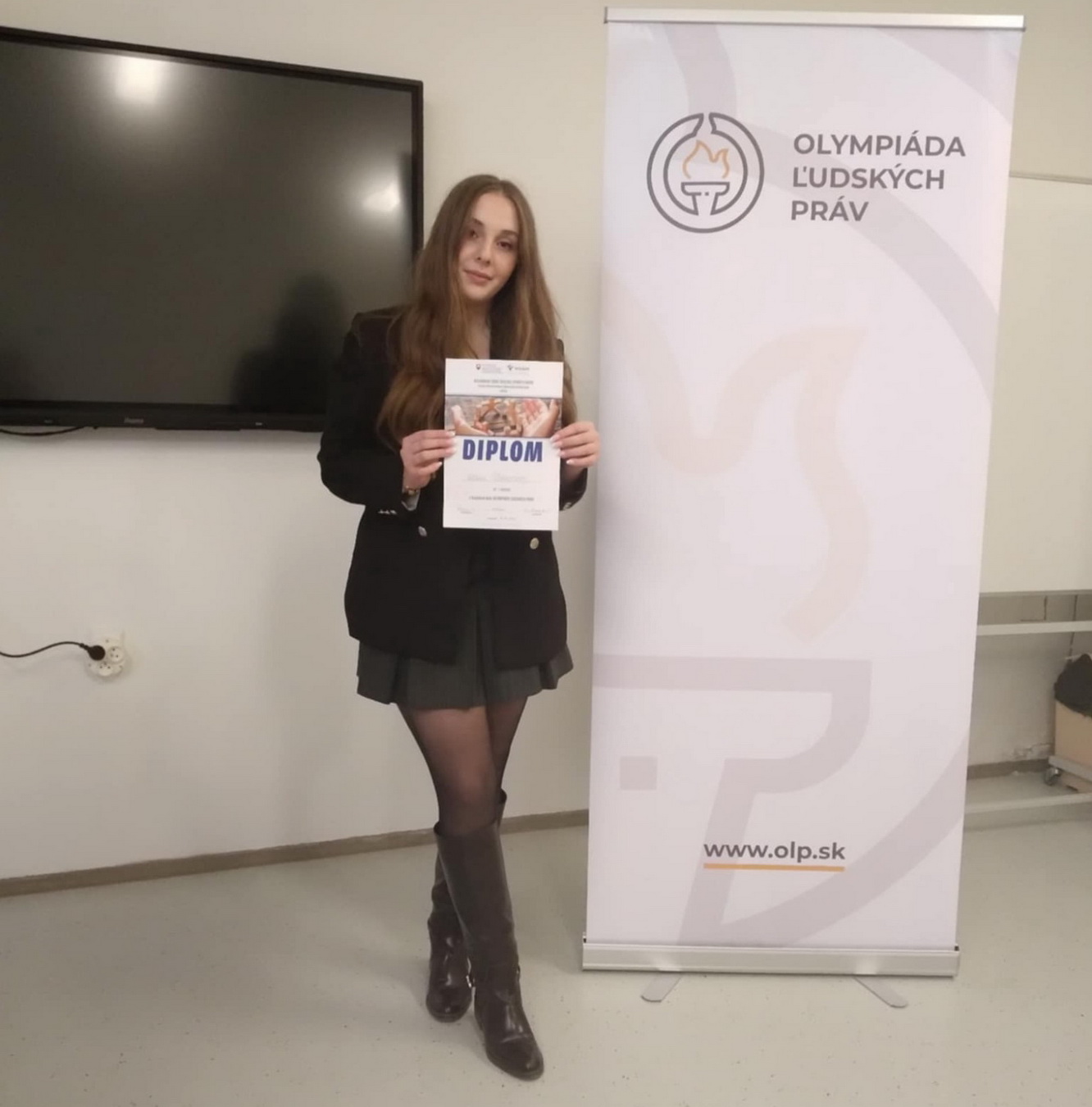 V dňoch 14.4. – 16.4.2026 sa v Bratislave uskutočnilo celoslovenské kolo 28. ročníka Olympiády ľudských práv, na ktorom našu školu opäť úspešne reprezentovala Viktória Šlosiarová zo IV.A triedy.