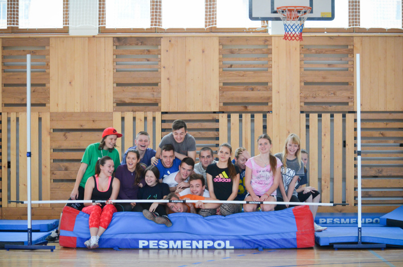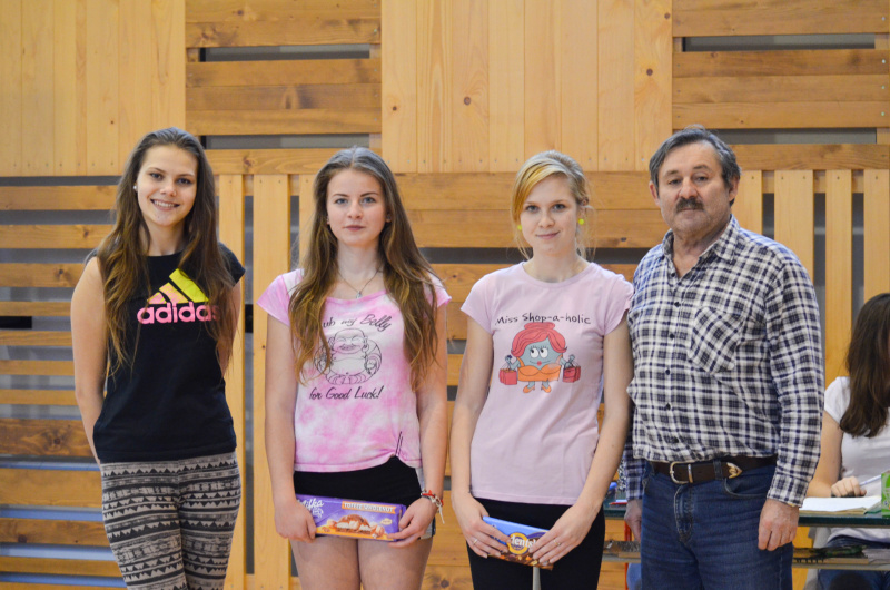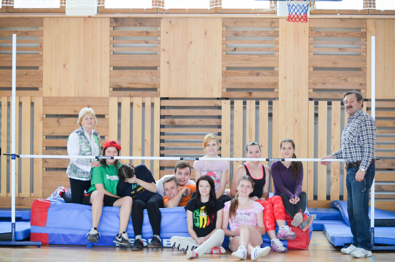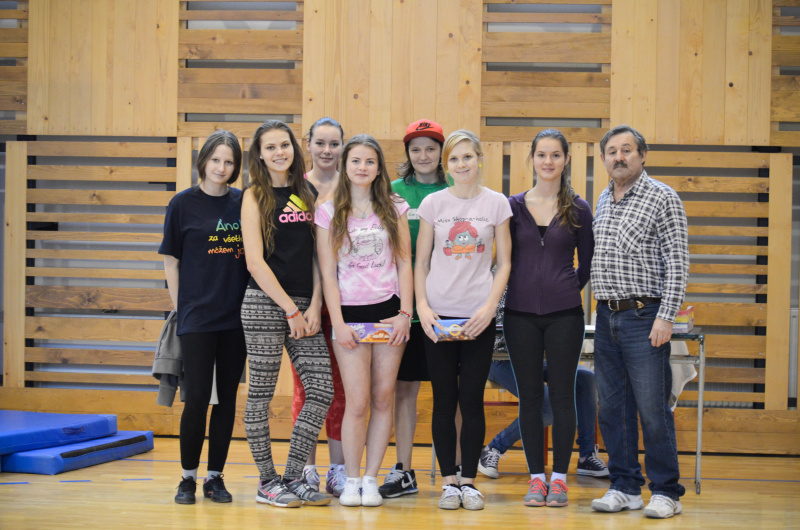 Mgr. Jana Stopperová a Mgr. Igor Haveta a ich úspešní žiaci na žinenke pri horizontálnej latke Spoločná fotka žiakov na žinenke pri horizontálnej latke Mgr. Igor Haveta a najlepšie dievčatá Mgr. Igor Haveta a dievčatá