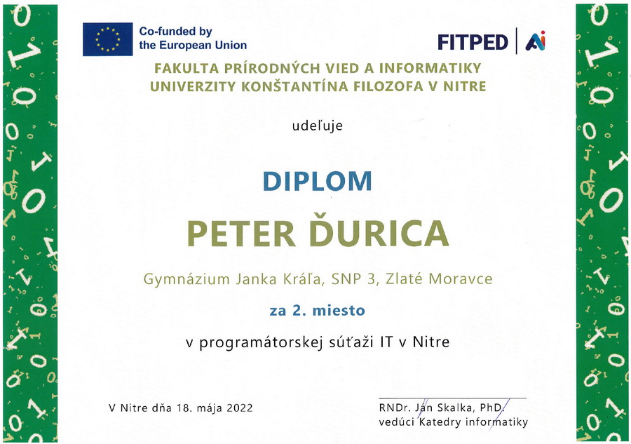 Krásny úspech našich programátorov na súťaži IT v Nitre