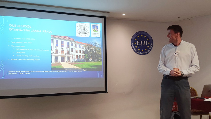 Štruktúrovaný kurz, zameraný na nadobudnutie kompetencií v oblasti projektového manažmentu programov Erasmus+, bol organizovaný hamburským Inštitútom European Teacher Training UG na gréckom ostrove Kréta. Pôvodný termín mobility bol naplánovaný na október 2020. Nariadenia MŠVVaŠ z dôvodu pandémie priniesli nielen online výučbu, ale aj zákaz všetkých mobilitných aktivít. Počas tohto obdobia sme intenzívne komunikovali s organizátorom kurzu, absolvovali vzdelávania a študovali podklady. Absolvovanie kurzu si vyžadovalo prípravu formou štúdia odporúčaných materiálov a oboznamovanie sa s krajinou, v ktorej absolvujeme vzdelávanie.