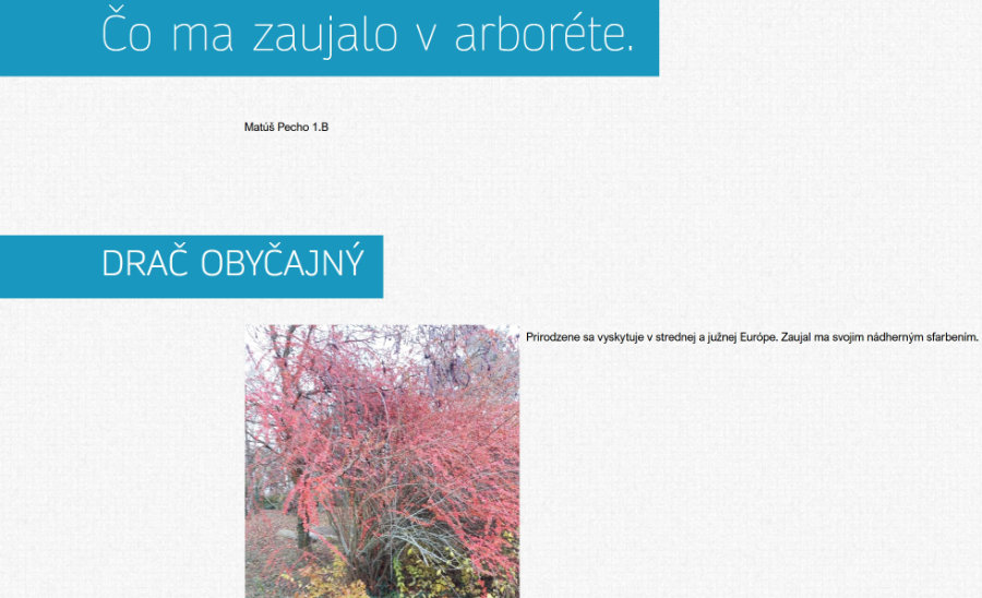 Exkurzia bola zaujímavá a poskytla nám užitočné poznatky o pestovaných drevinách. Prínosom bolo najmä spojenie teórie s praxou - dreviny v prirodzenom prostredí sme mohli skúmať nielen očami, ale sa ich aj fyzicky dotýkať.