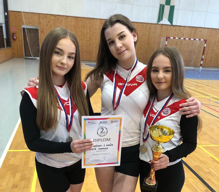 Naše šikovné žiačky Ema Juhásová (II. A), Petra Záhorská (IV. A), Stanislava Záhorská (IV. A) sa na Majstrovstvách kraja v bedmintone SŠ, konaných dňa 19. 3. 2024, umiestnili na krásnom 2. mieste.
